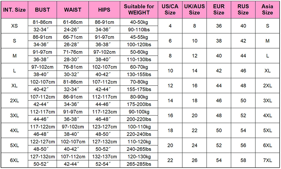 Our size takes international size as the standard, so please refer to the table for the size standard compared with other countries, We use high quality fabric which can be easily stretched . Please also refer to the following measurements restrictions: (Our product will not fit you if your measurements exceed the following restrictions).