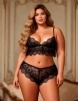 Plus Size Black Lace Temptation 2pcs Bralette Lingerie Set