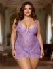 Sexy Slim Purple Plus Size Lace Deep V Neck Sleepwear With Thong