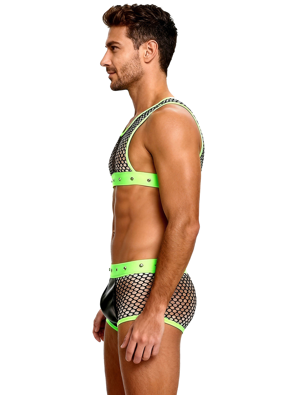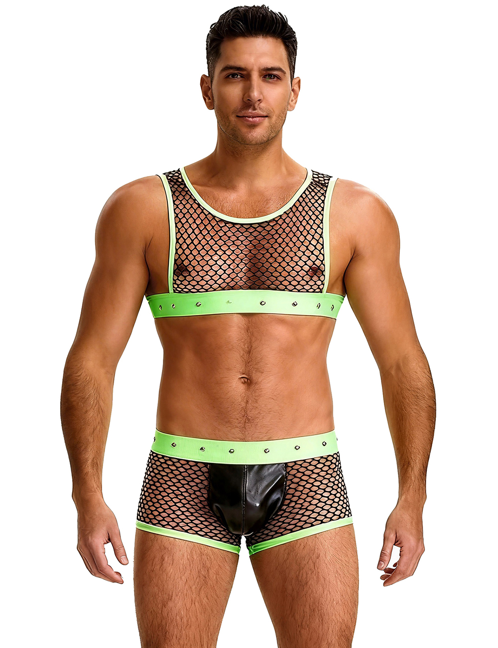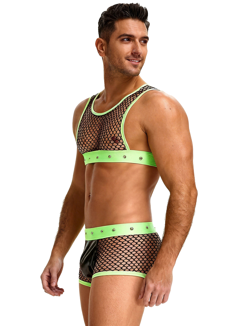 Green Men Sexy Fishnet See Through Lingerie Set