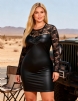 Black Long Sleeves PU Leather Lace Sexy Nightdress