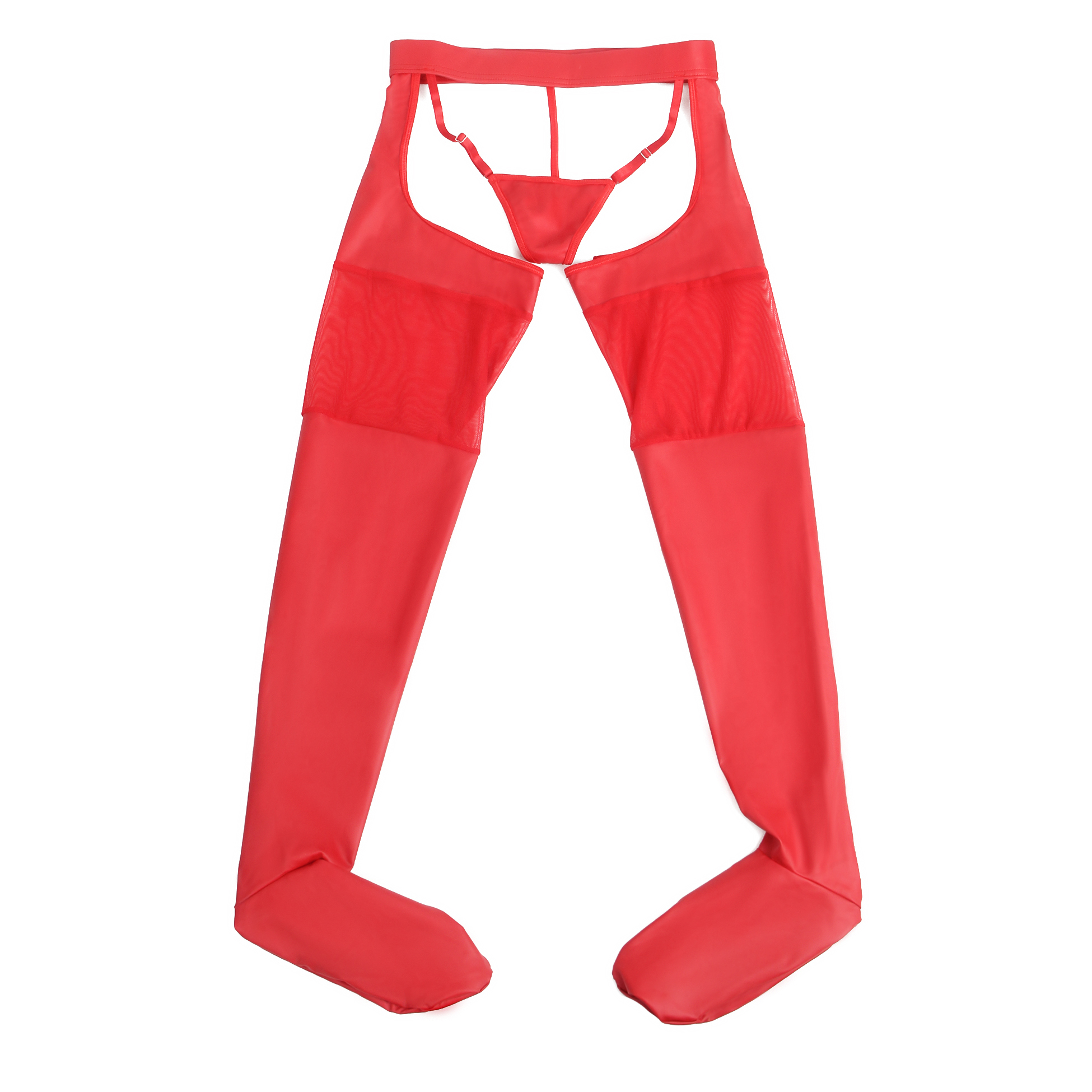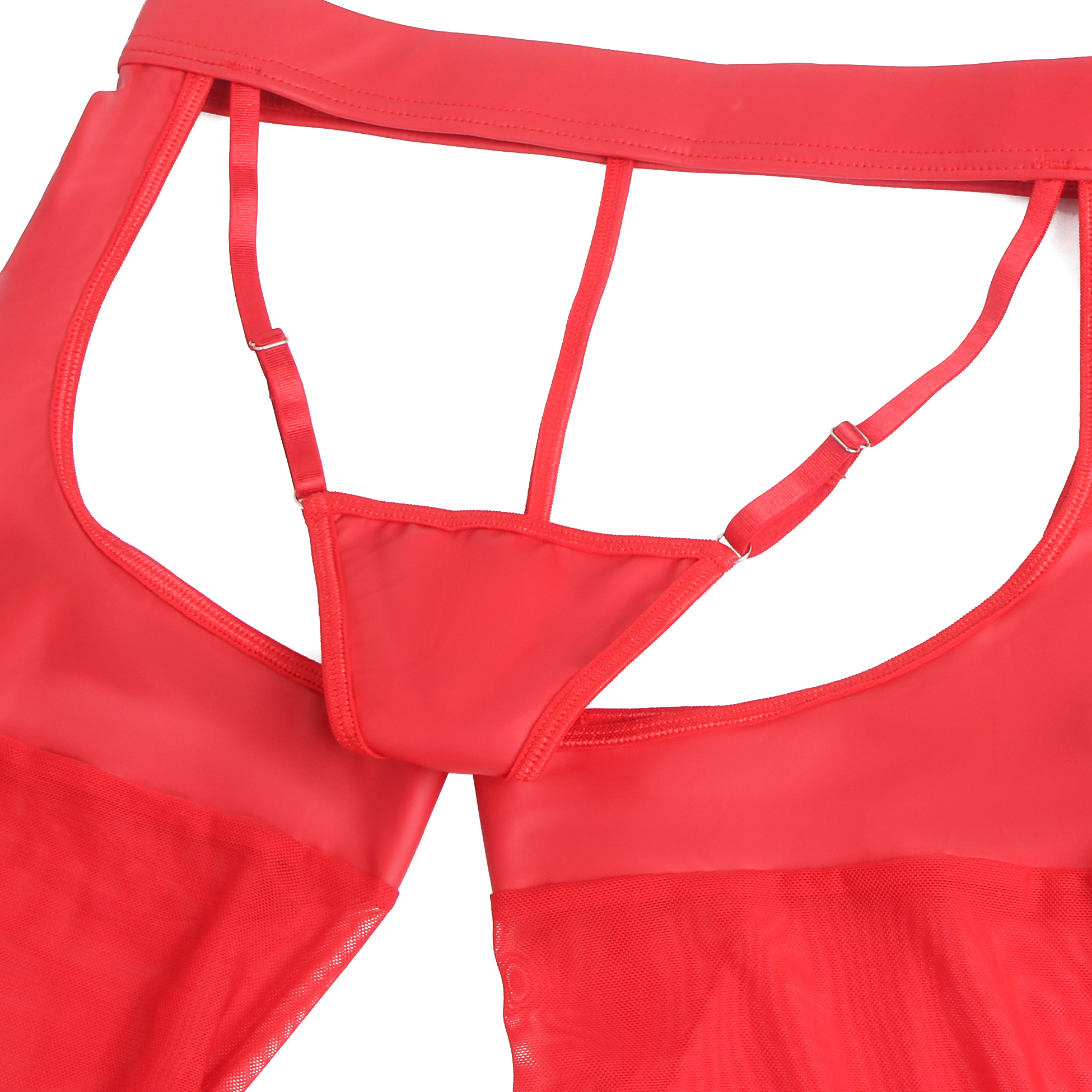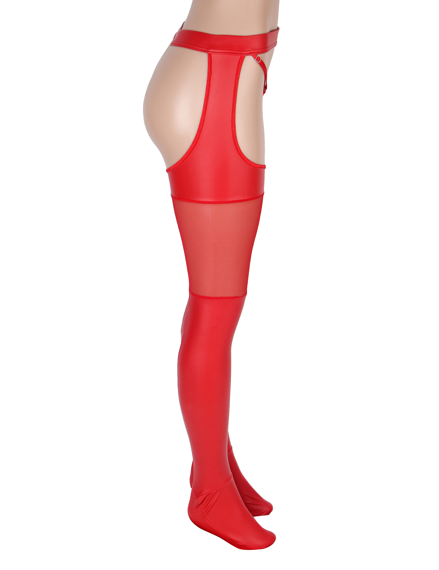 Sexy PU Leather Mesh Red Garter Stockings With Thong