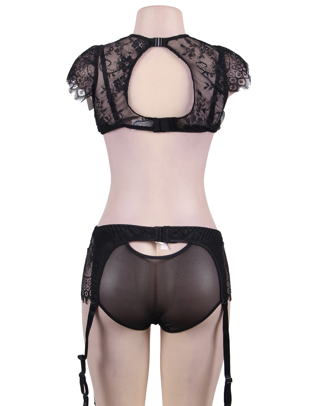 One of the standout features of this bra set is the four elastic garters, which prevent stockings from slipping. This adds both practicality and aesthetics to the overall design.