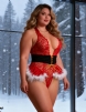 Standard product name: Red, lace mesh fabric, hem stitched with ruffled mesh + white fur trim, deep V-neck, halter tie, hollowed-out crotch, comes with a black waist belt + Christmas hat, M-5XL, women`s Christmas bodysuit set