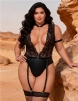 Black Sleeveless Lace Deep V-neck Faux Leather Bodysuit