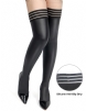 Black Sexy Matt PU Leather Striped Elastic Stockings