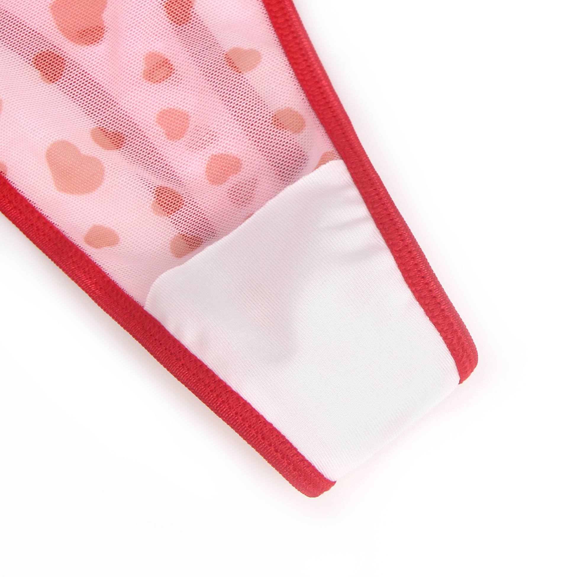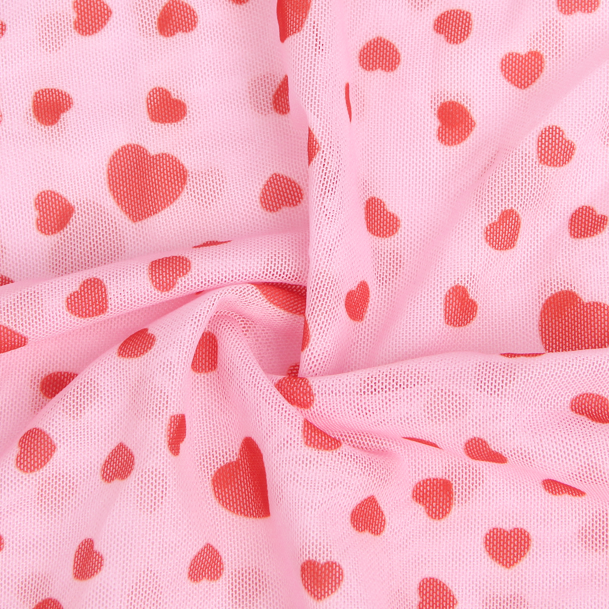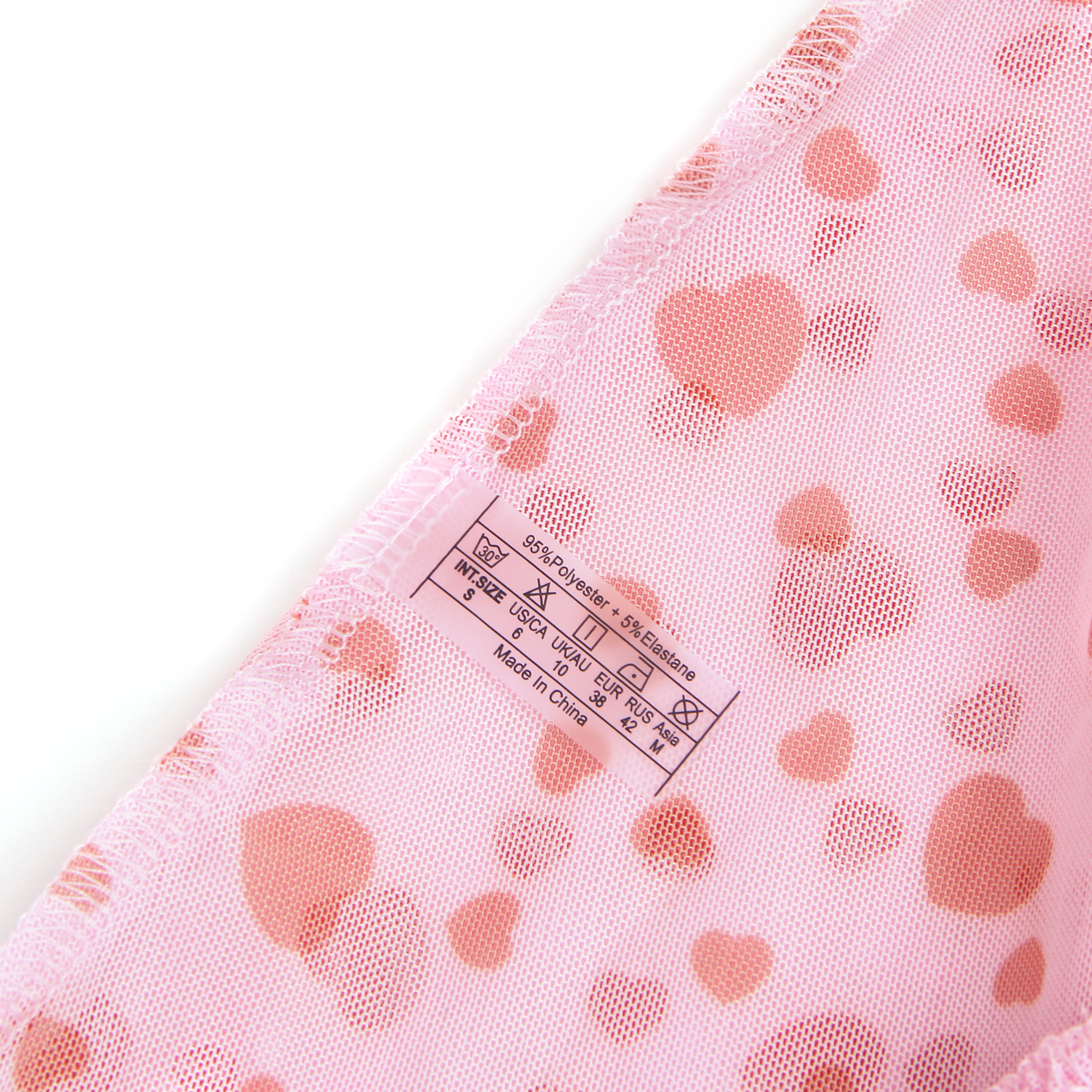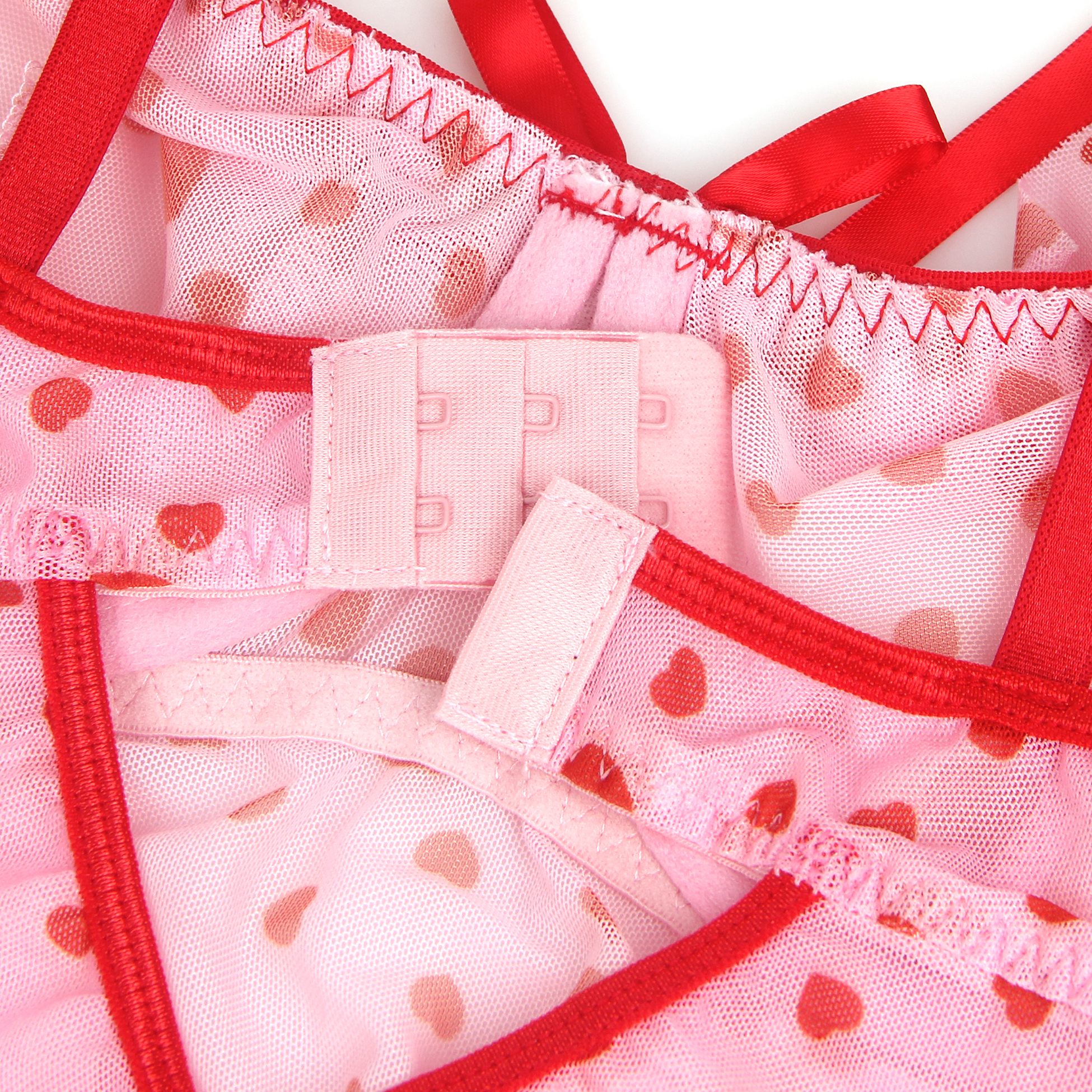 Pink Heart Printed Mesh Ruffled Sexy Nightdress