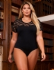 Black Sexy Swim Cloth Lace Short Sleeves Open Crotch Bodysuit