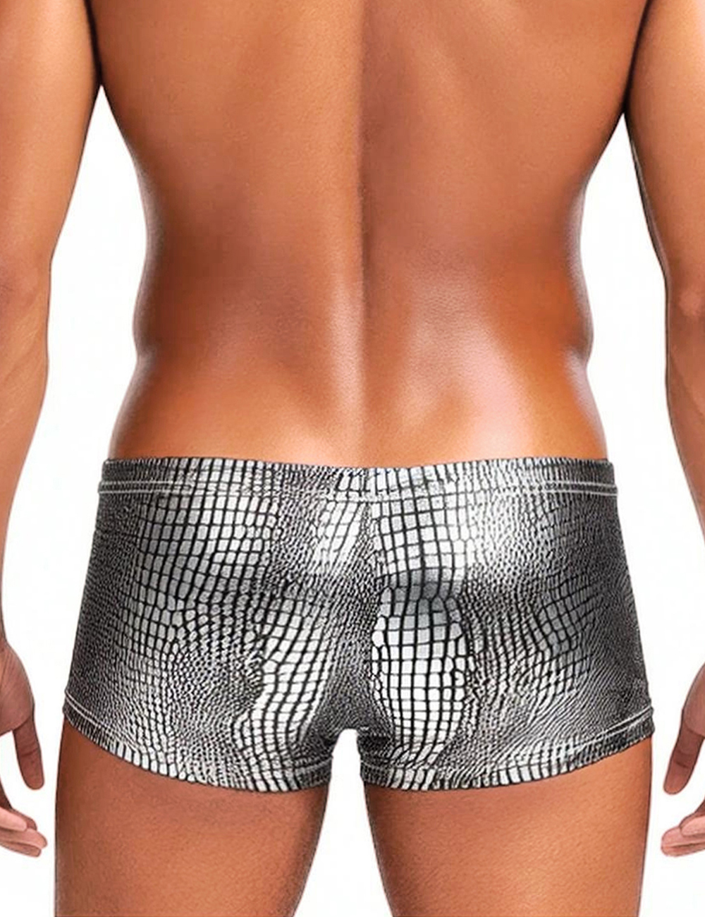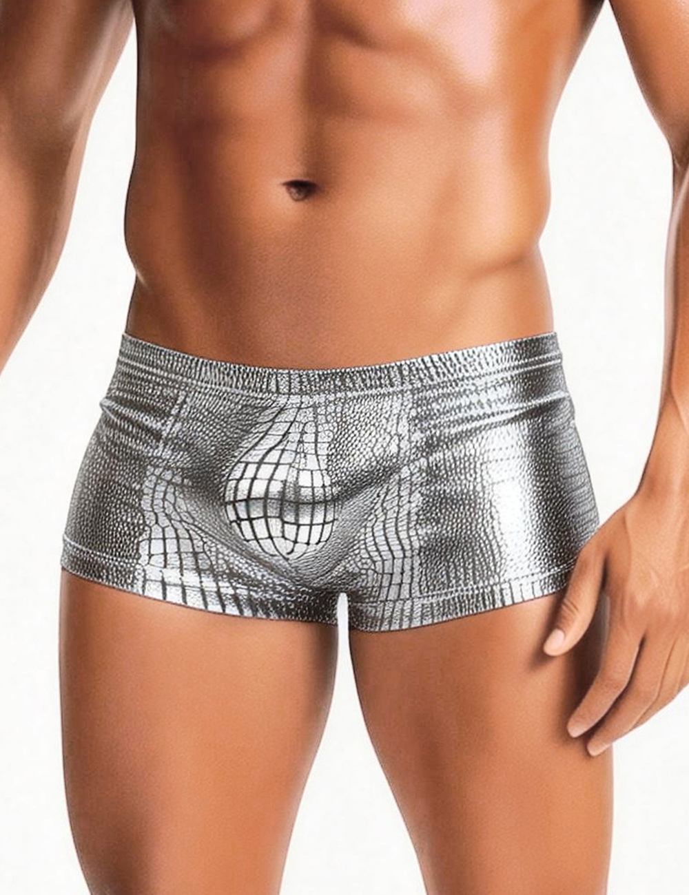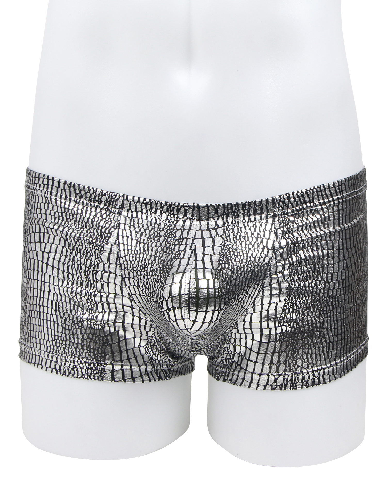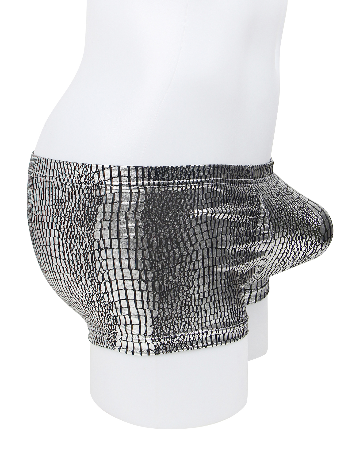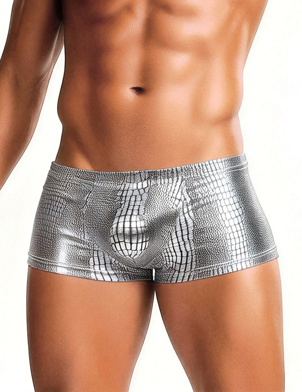 Silver Low-rise Faux Snakeskin Men Boxer