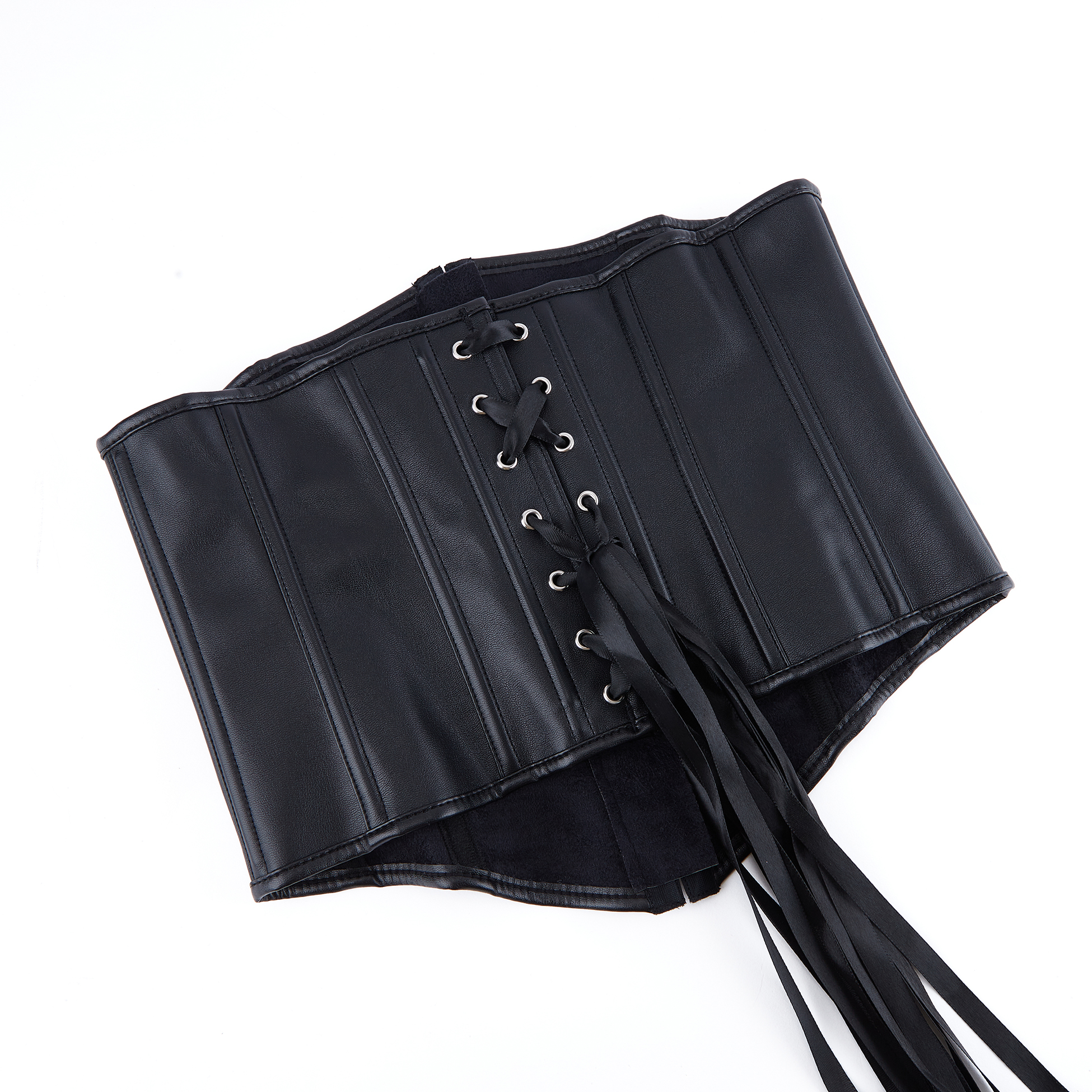 14 Plastic Bones Black Faux Leather Waist Cincher
