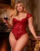 Burgundy Lace Square Neck Short Sleeves Open Crotch Bodysuit
