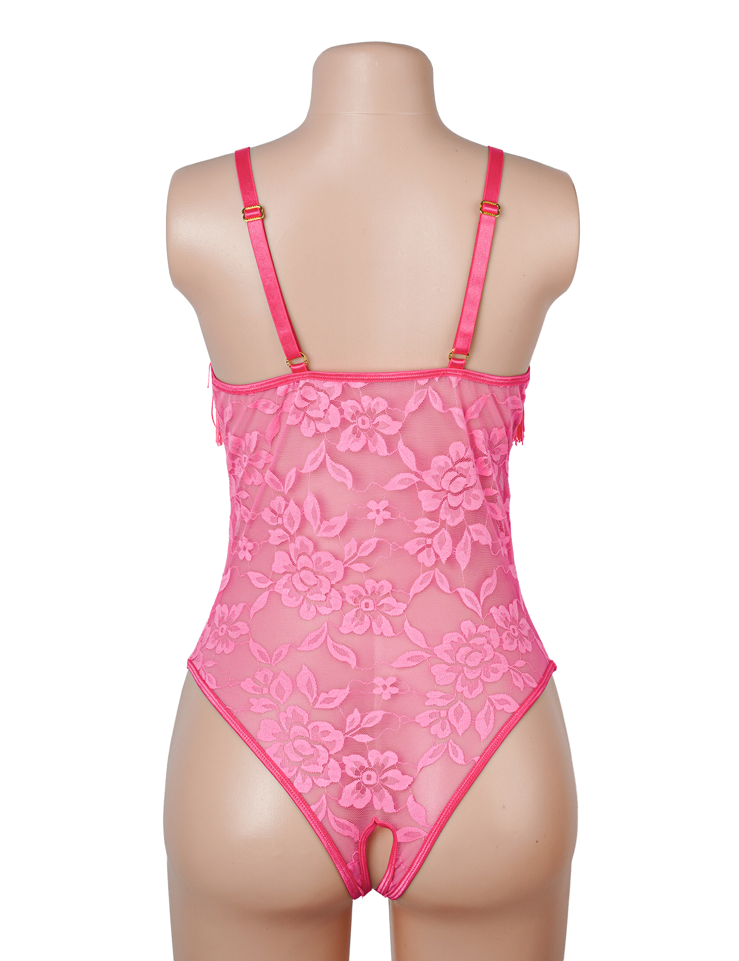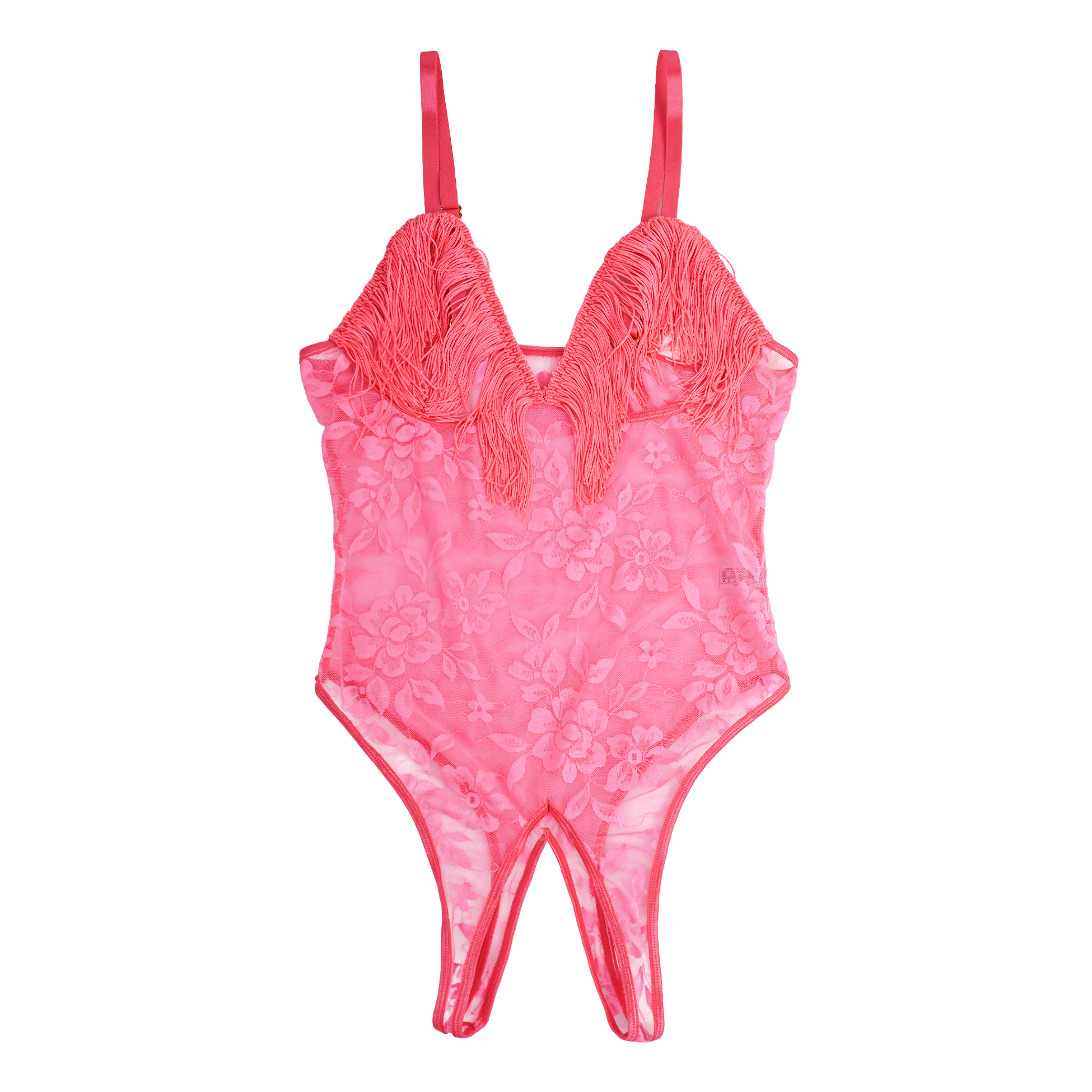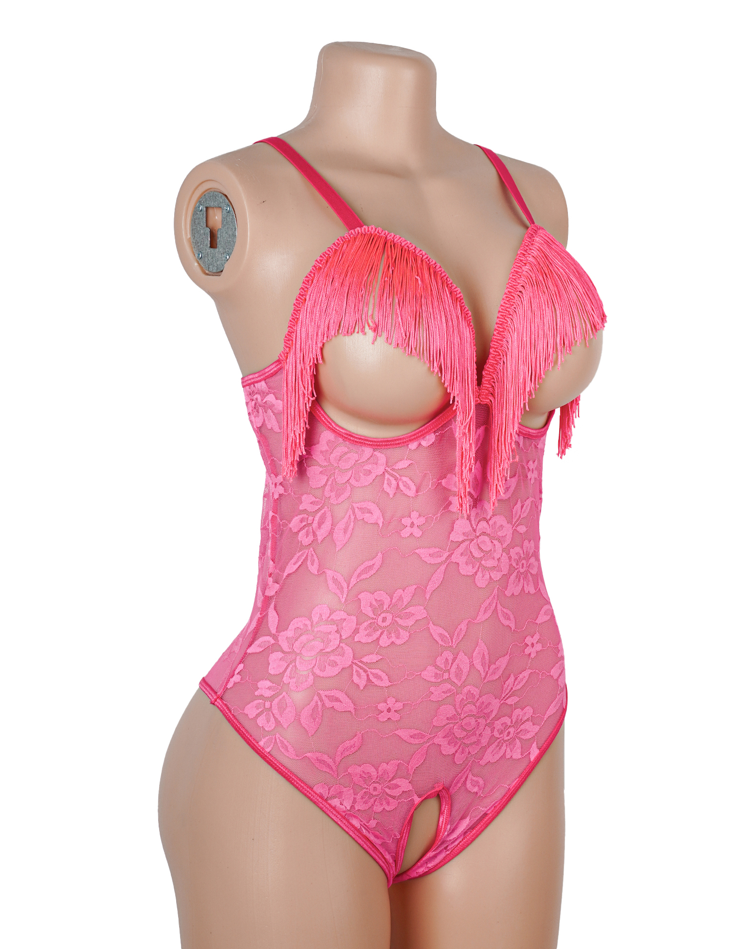Sexy Rose Lace Tassel Halter Neck Cutout Bodysuit